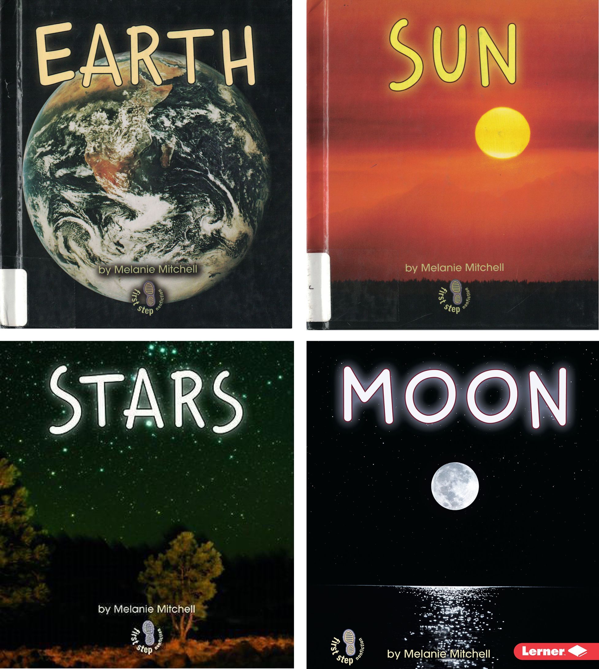 Earth, Stars, Moon, and Sun are an exception. These are lovely little non-fiction books for emerging readers or just for kids who want to learn facts in a read-aloud and look at thoughtfully chosen photos of space-related things.
