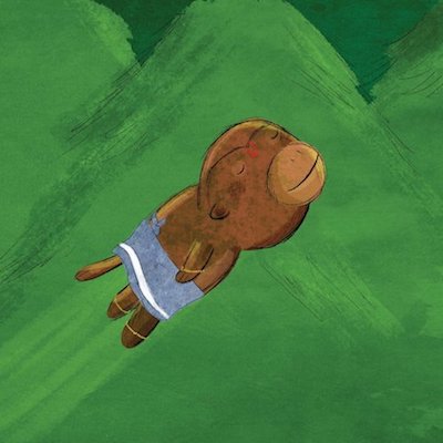 The text rhymes, although (I suspect owing to translation) the rhythm feels off occasionally. It’s amazing how movement-filled the book feels considering it is about a mountain who can’t move! The illustrations pop against a white background with colors that contrast in interesting ways.