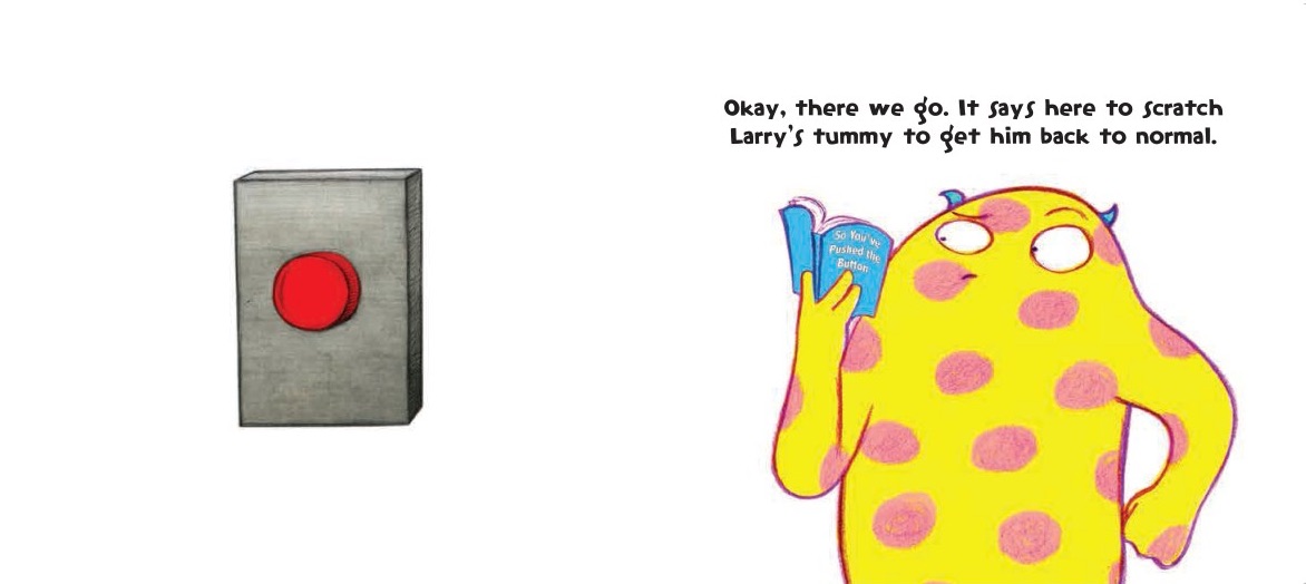 To help Larry get "back to normal," the child is instructed to scratch his tummy, and then finally to shake the book. Of course it all ends with one last button push and an explosion of funny, colorful monsters.